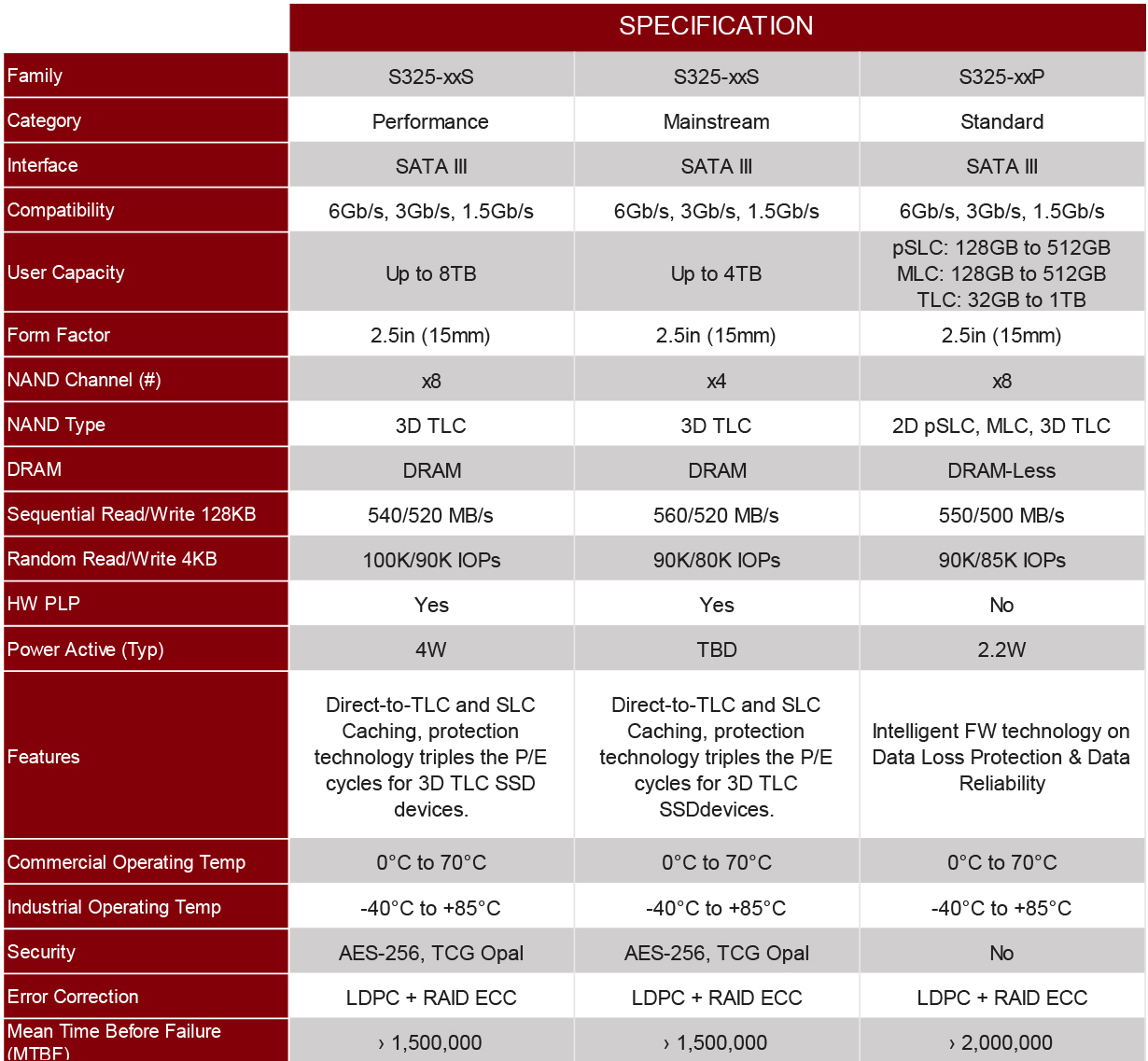 ‧Self-Encryption AES-256, TCG Opal, TCG Pyrite