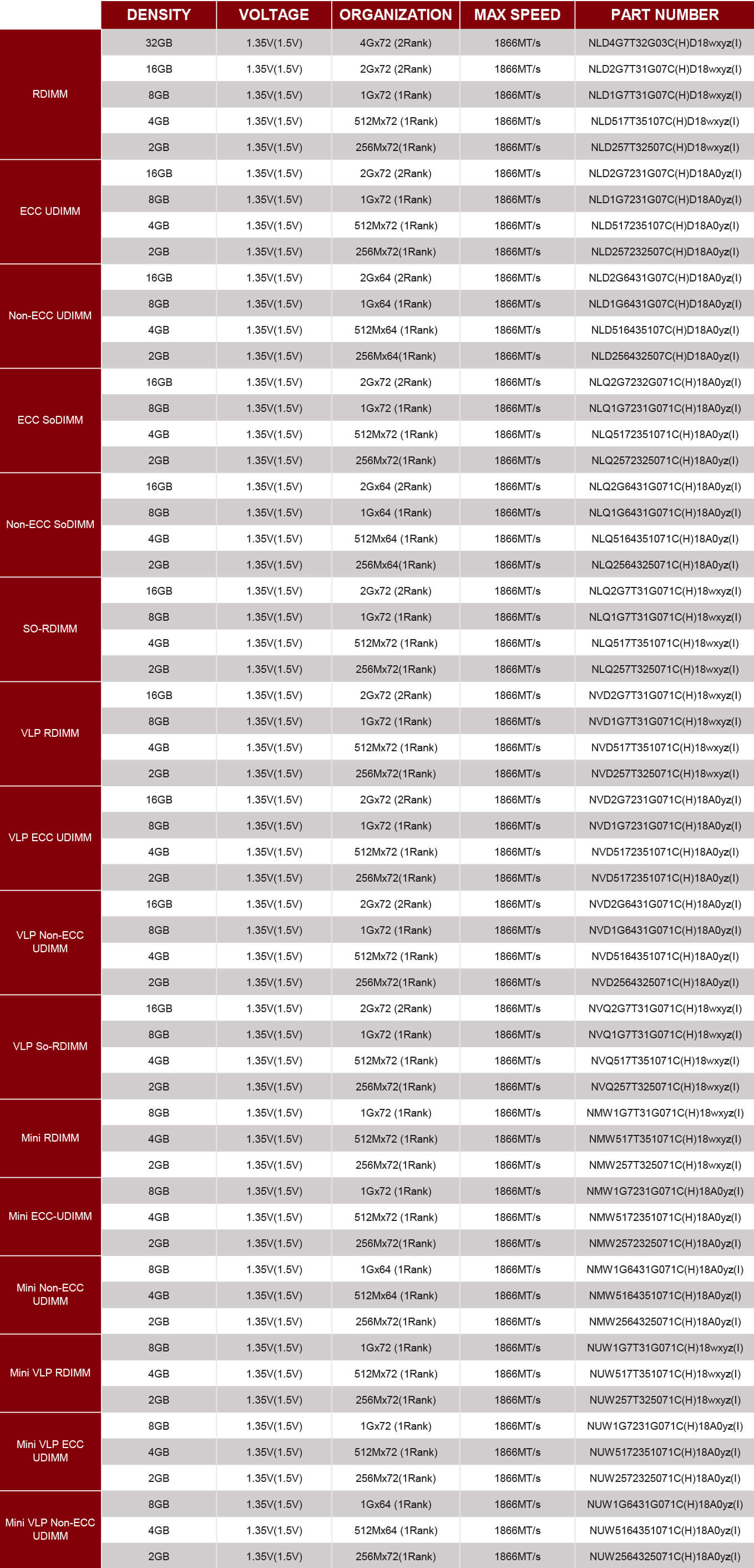 - ‧JEDEC Standard 1.35V and 1.5V Power Supply